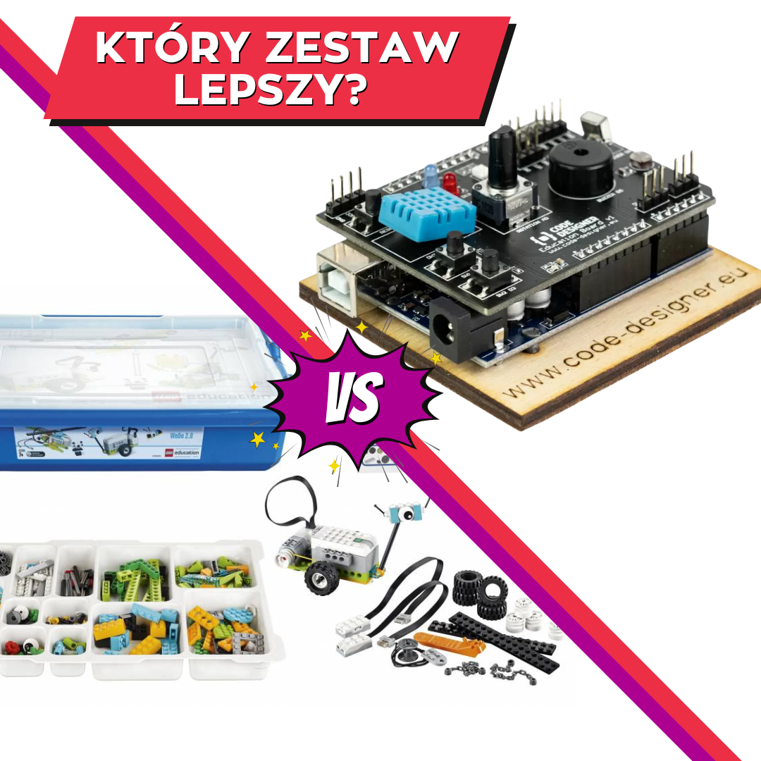W tym artykule porównujemy LEGO WeDo/Spike z zestawem edukacyjnym Education Board V1 + Arduino Uno od Code Designer. To zestaw, który powstał specjalnie z myślą o edukacji, zarówno tej szkolnej, jak i indywidualnej, a przy tym zachowuje bardzo atrakcyjną cenę. Analiza obejmuje funkcjonalność sprzętu, możliwości rozwoju, środowiska programistyczne oraz koszty użytkowania — wszystko po to, aby odpowiedzieć na pytanie: który zestaw to lepszy prezent edukacyjny i rozwojowy?